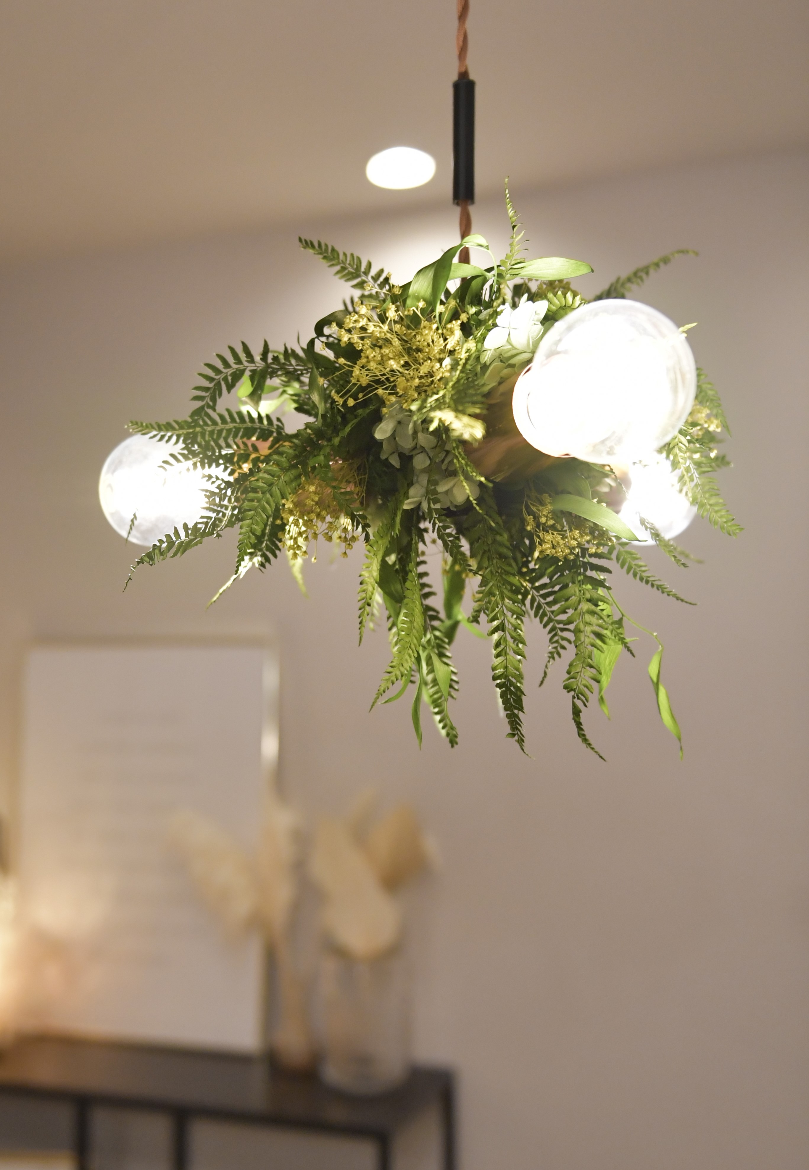 ・ タイプ:吊り型 ・ メイン花材:山シダ、ノルウェーカエデ ・ 設置:シーリングプラグ ・ サイズ:直径 35cm×高さ 120cm×チェーン長さ 85cm ・ 原産国:日本 ・ 購入前にホームページ上部の「必ずお読みください」のページをご覧頂きご注文ください。ご注文時点で確認頂いていると判断させて頂きますので予めご了承ください。 ※商品画像については、モニターによって色味が若干異なります事ご了承ください。
